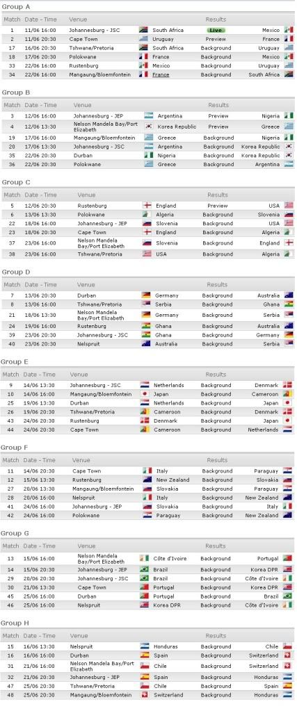 01:30 Serbia VS Ghana, Loftus Versfeld Stadium, Pretoria
